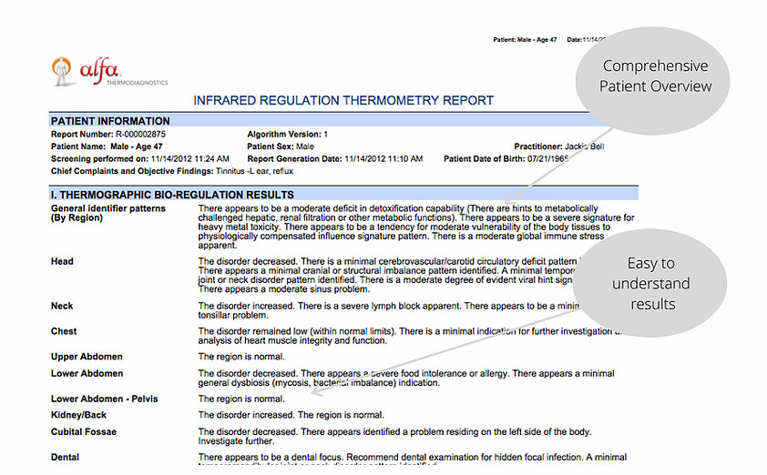 The AlfaSight 9000 is a robust, easy-to-use, and reproducible measurement system that utilizes streamlined infrared technology and years of world-corroborated, accumulated data. It’s a whole-body, adjunct early-detection system that views a patient’s overall health from an autonomic nervous system response, while potentially finding hidden issues.