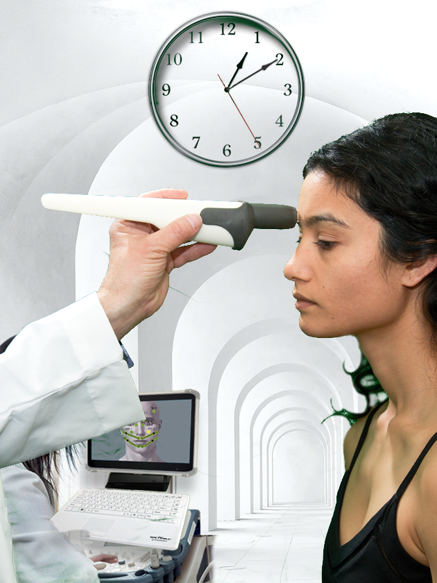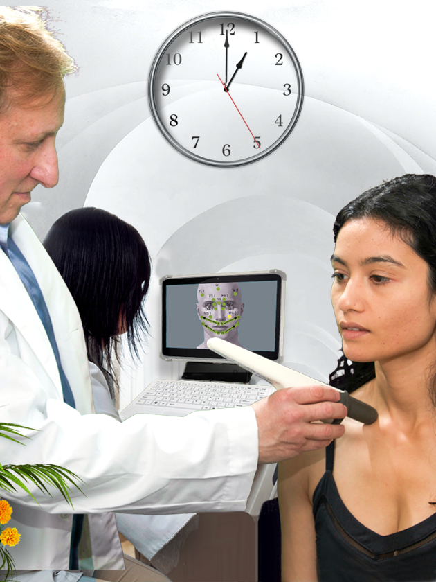 The first scan creates a "baseline" reading. The AlfaSight sensor scans 120 points on the face, neck, torso, and arms while disrobing from the waist up.